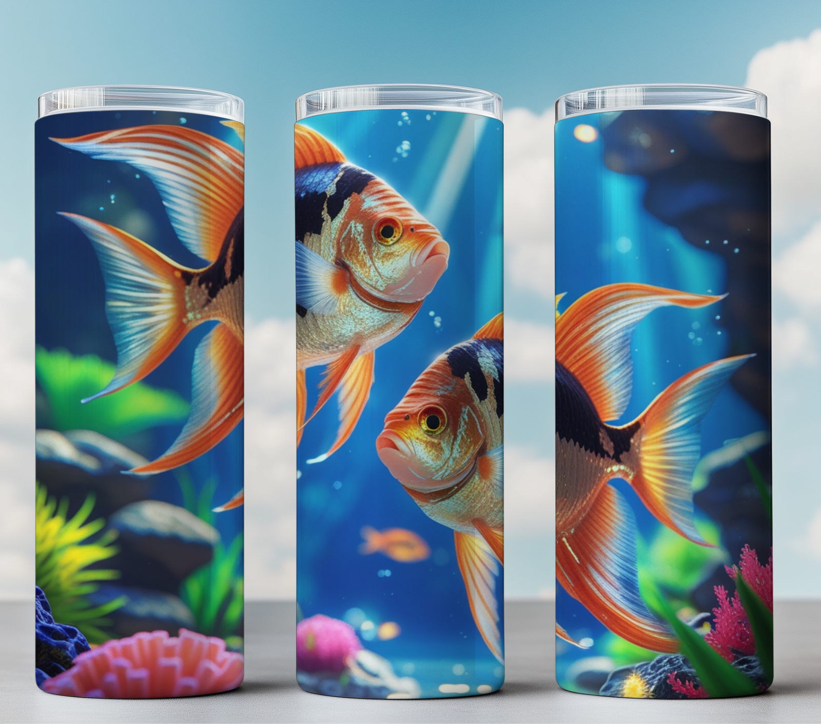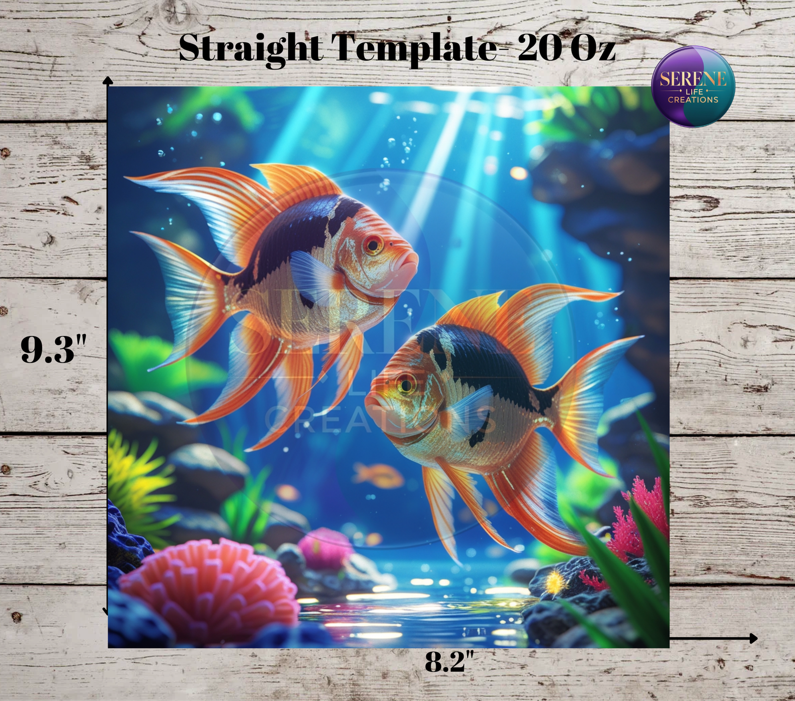 Transform your tumbler with this Angel Fish Tumbler Wrap, featuring a beautifully detailed underwater scene with graceful angel fish gliding through a vibrant coral reef. This high-quality 9.3 x 8.2-inch sublimation design adds a touch of aquatic elegance to your drinkware, perfect for ocean and nature lovers.