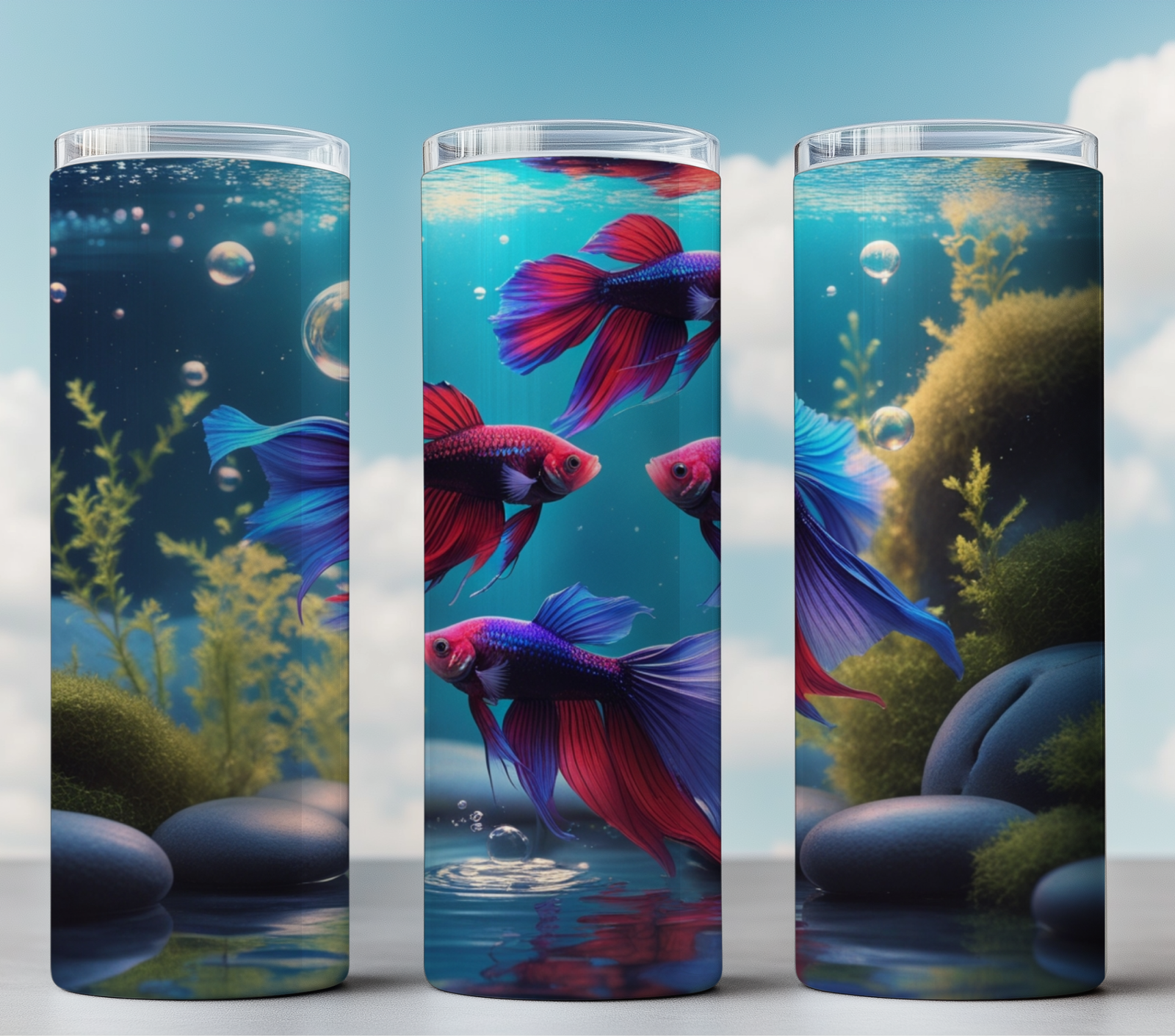 Elevate your tumbler with this Betta Fish Tumbler Wrap, showcasing an eye-catching underwater scene with elegant, flowing betta fish in rich shades of blue, red, and purple. Designed for 9.3 x 8.2-inch sublimation tumblers, this high-resolution digital file adds a striking, artistic touch to your drinkware.