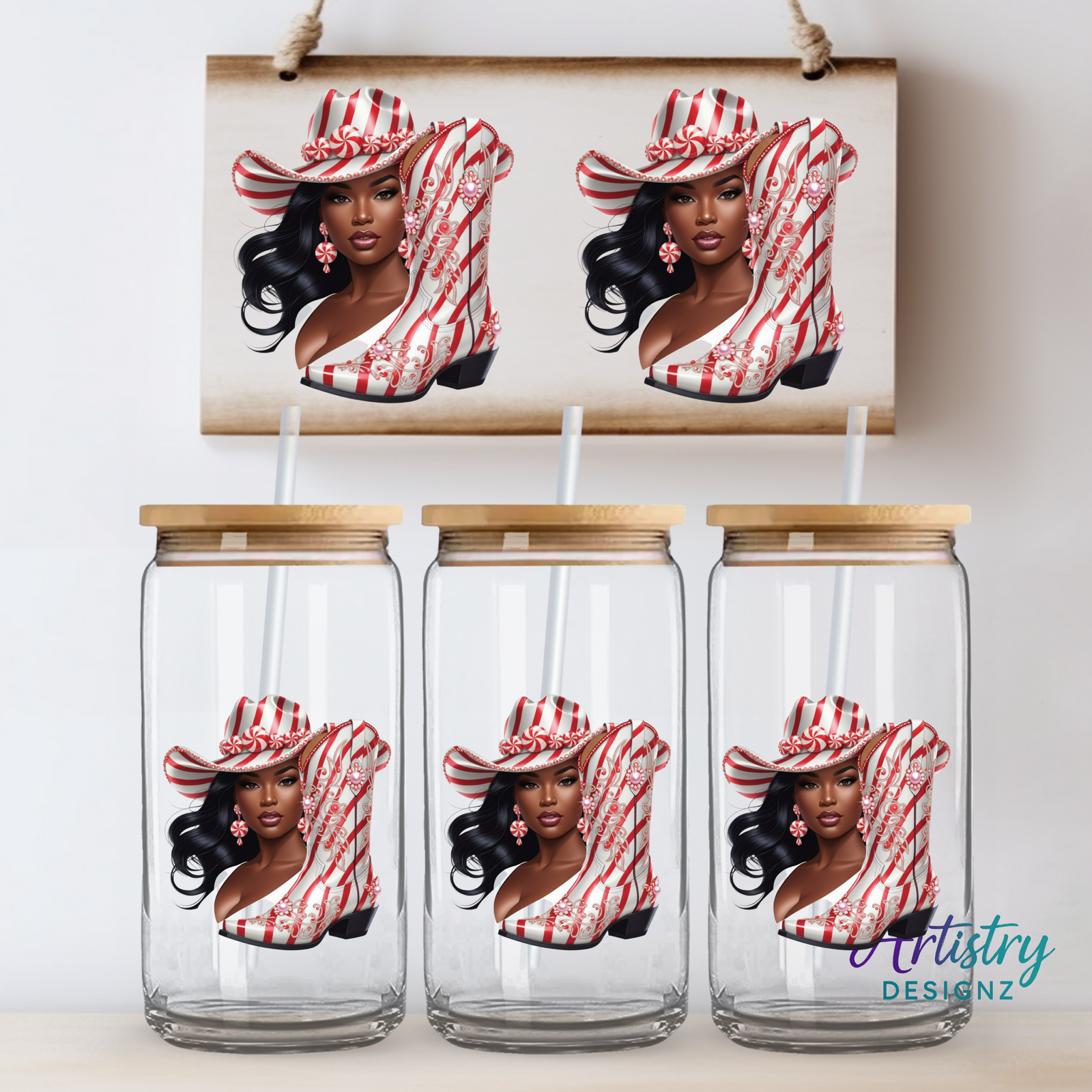 Each design has a transparent background, making them easy to use for sublimation, crafts, t-shirt designs, stickers, mugs, invitations, scrapbooking, and more. Perfect for creatives looking to add diversity and fashion-forward cowgirl flair to their holiday collections.