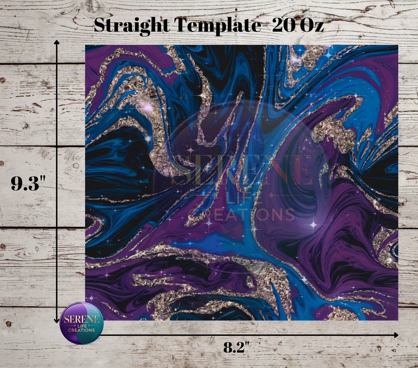 Dive into the deep allure of the “Midnight Swirl” tumbler wrap, designed for 20oz tumblers. This wrap boasts a mesmerizing pattern of dark blues, vibrant purples, and shimmering gold accents, capturing the essence of a mysterious night sky. Ideal for those who love a touch of mystery and elegance, its high-resolution 300 DPI ensures stunning detail and durability for everyday use.