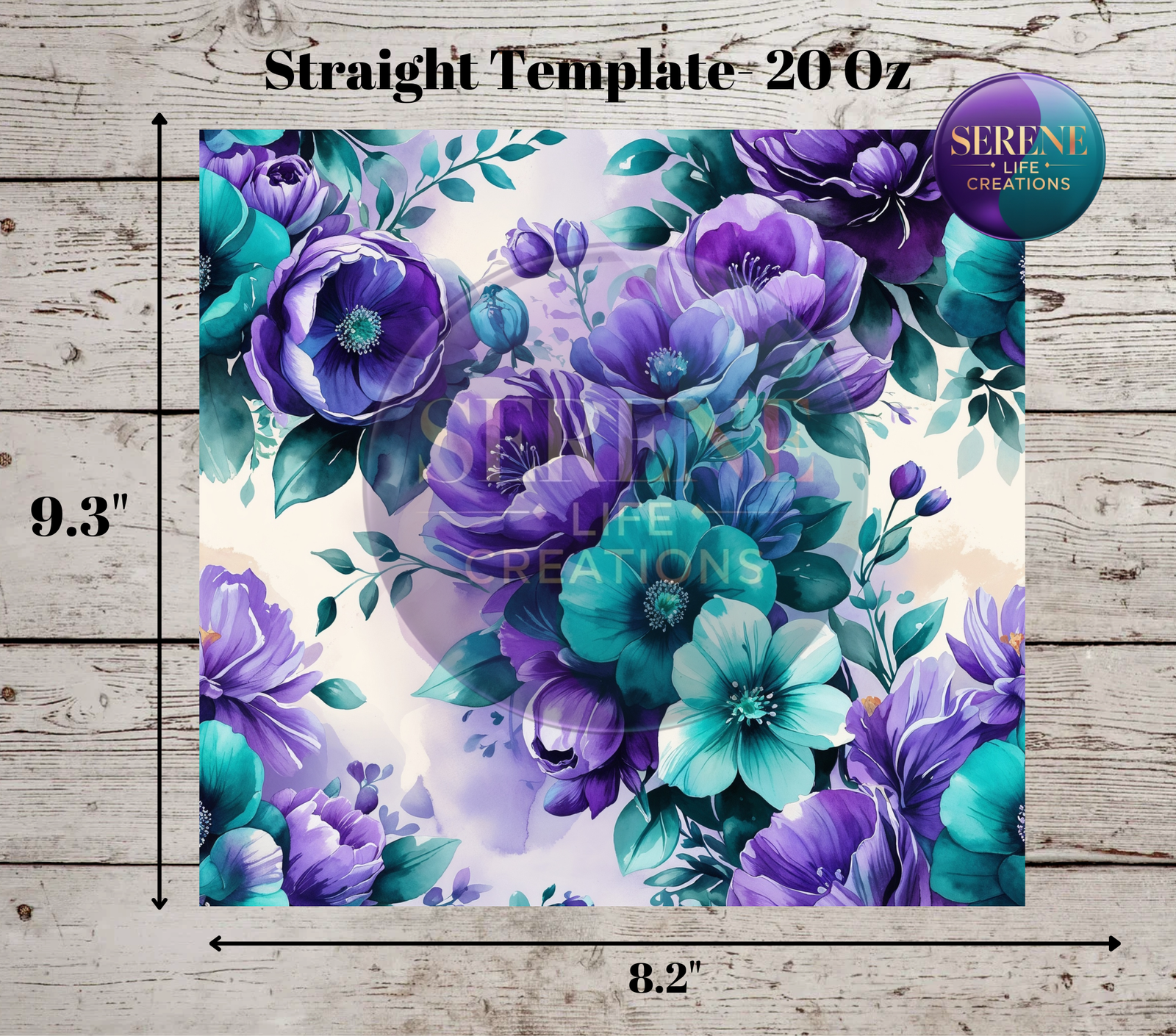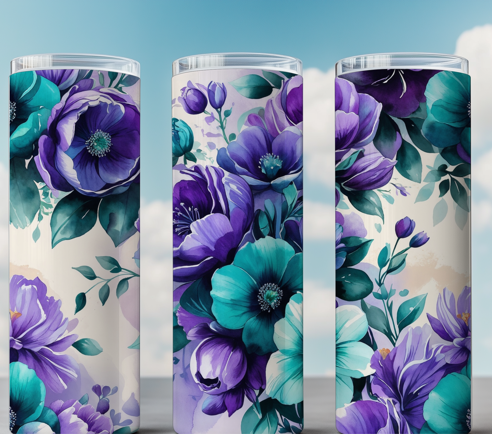 This stunning watercolor purple and teal floral tumbler wrap is designed for 20oz skinny sublimation tumblers, featuring a high-resolution seamless floral pattern. The rich, vibrant colors and hand-painted details make this digital design perfect for crafting elegant and eye-catching drinkware. Ideal for personal use or small business projects, this design brings a bold yet serene aesthetic to your creation