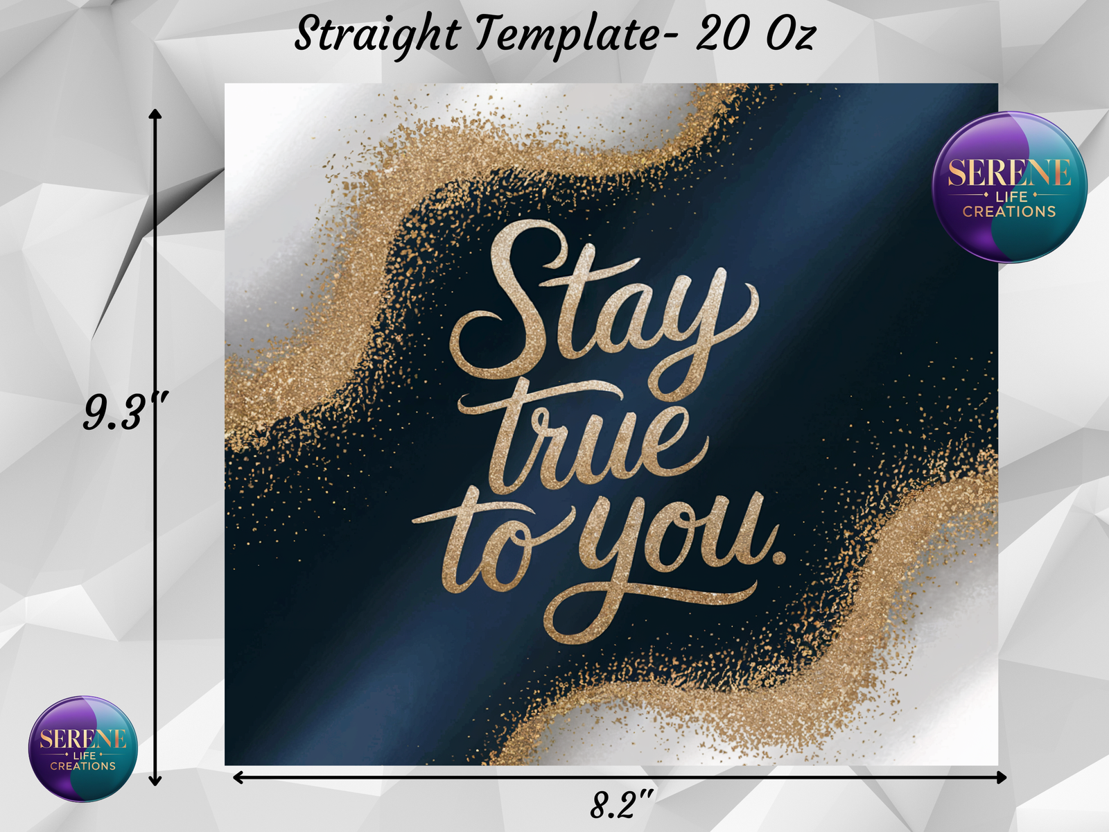Stay true to yourself with this elegant navy and gold tumbler wrap! Featuring a deep navy blue background with flowing gold glitter accents and bold lettering, this design is perfect for those who love inspirational and sophisticated tumbler designs. Designed for 20oz skinny tumblers, this high-resolution PNG ensures a seamless print.